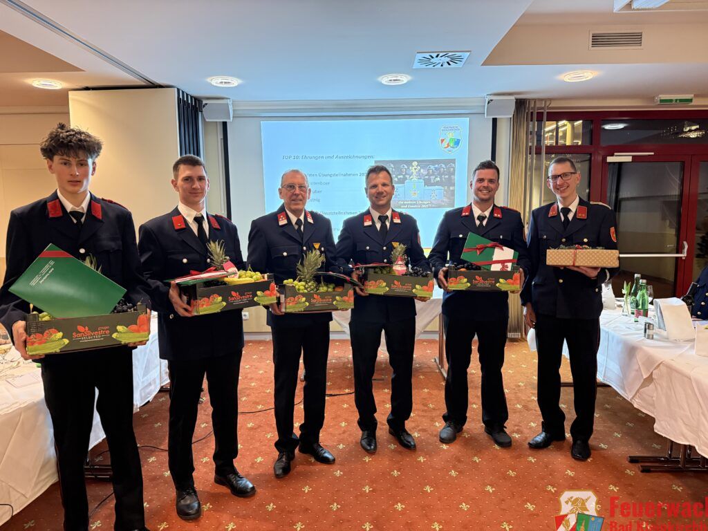 Auch besondere Leistungen im Übungs- und Einsatzdienst wurden gewürdigt. Die meisten Übungsteilnahmen verzeichneten Luca Grootenboer, Otmar Gruber und Felix Forstnig. Bei den Einsätzen waren Hans Peter Krenn, Phillip Maierbrugger, Christian Prägant und Otmar Gruber besonders engagiert. In der Gruppenauswertung setzte sich die Gruppe 4 mit Gruppenkommandant Hans Peter Krenn knapp vor den Gruppen 3 und 2 durch.