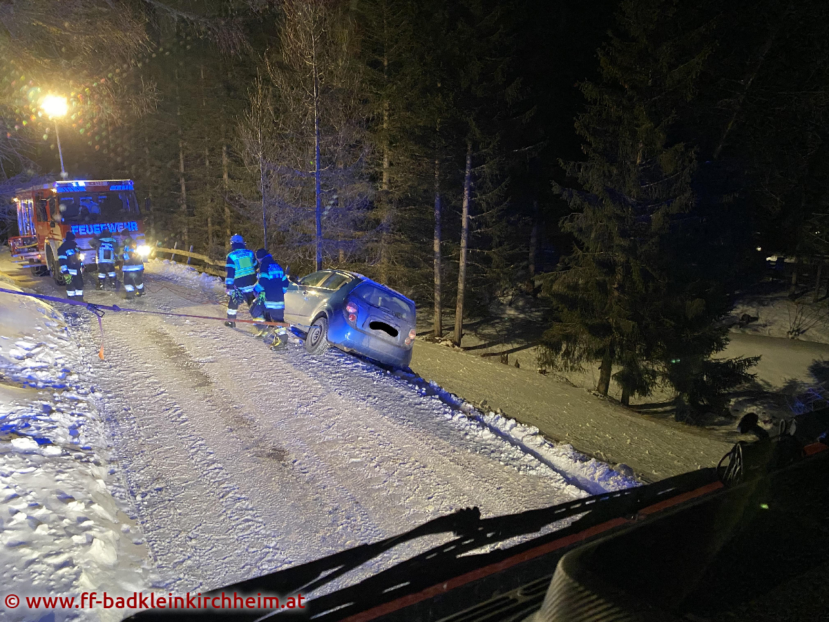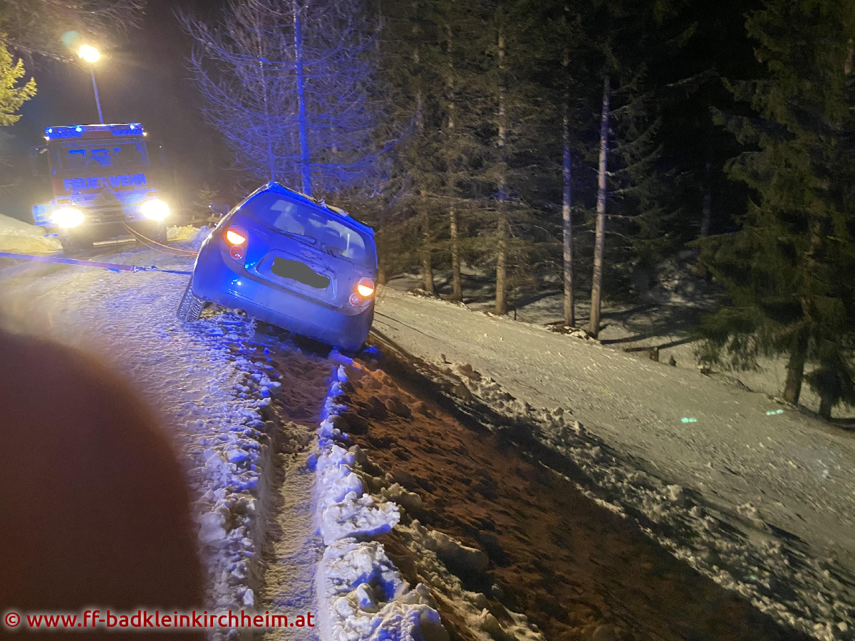 Ein PKW war am Angerbichlweg von der Fahrbahn abgekommen und blieb glücklicherweise auf der Böschungskante hängen. Die alarmierte Feuerwehr Bad Kleinkirchheim begann nach dem Eintreffen sofort mit Sicherungsmaßnahmen.